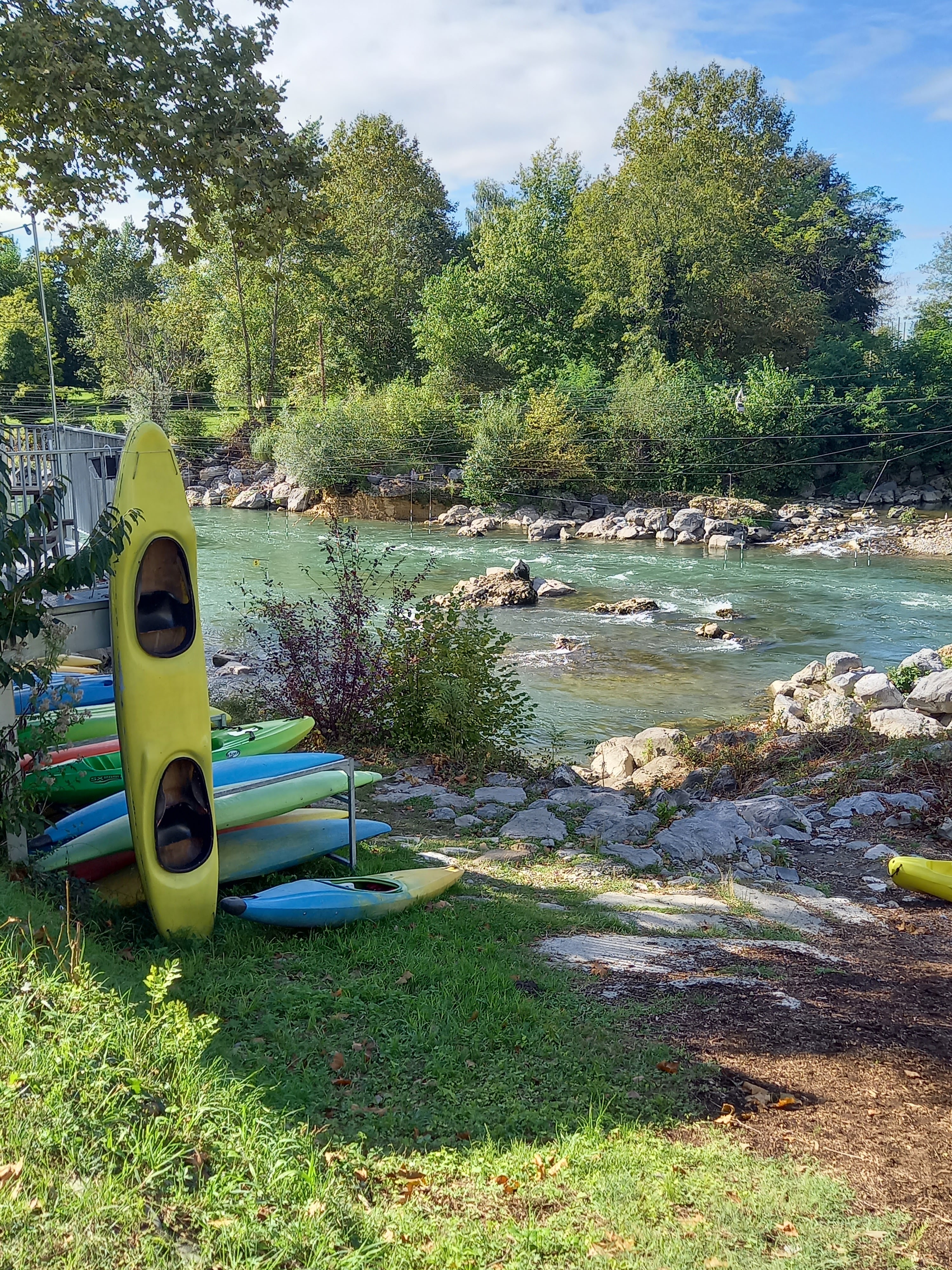 Bel endroit . Matériel à foison et club house au pied de la rivière ( gave ) . Bassin naturel et portes pour entraînement.